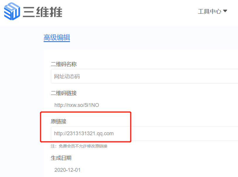 在三维推平台免费注册账号:会员生成链接及二维码,所有内容在后台均有记录,因为有短连接跳转技术(后面详细解释),在链接地址、二维码保持永久不变的前提下,可以随时修改原链接地址及其内容。