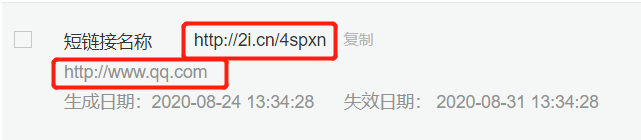 使用网址www.qq.com生成短链接及二维码,对应的短链接地址http://2i.cn/4spxn和二维码图片是不变的,但短链接对应的真实URL地址:www.qq.com是可以随时进行更换的,短链接http://2i.cn/4spxn可以理解为跳转的桥梁,连接原网址和访问方,原网址www.qq.com随意修改,自然不会影响到短链接的地址及二维码。
