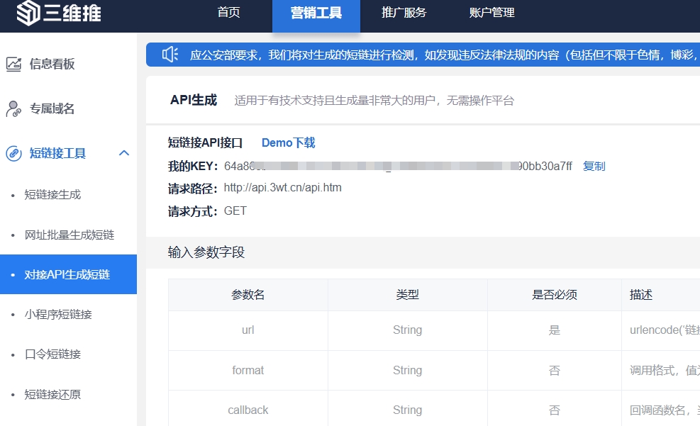 运营人员无需频繁登录三维推后台手动生成链接。通过API对接,短链接生成可以完全融入您的业务流程:
