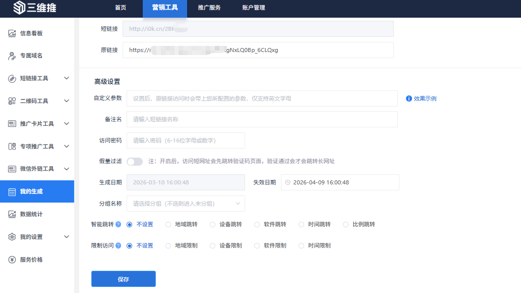通过API生成的短链接,同样享受三维推后台的完整管理能力: