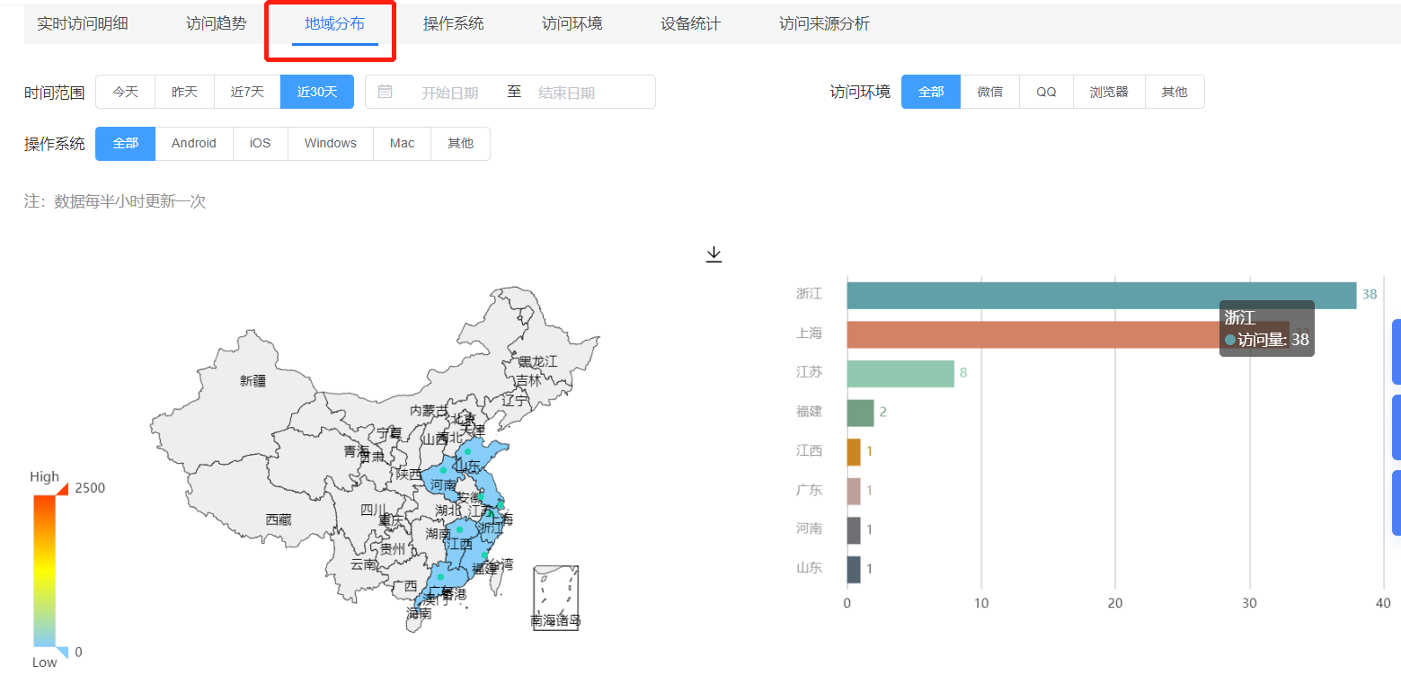 三维推短链接,支持全方位、多维度对短链接数据进行统计及分析,支持统计访问pv、uv、ip,用户访问地域分布、访问系统、访问环境、访问设备、访问记录及详细ip明细,全天候监控数据统计,支持数据对比,根据数据情况可及时调整推广策略,从而实现精准营销。