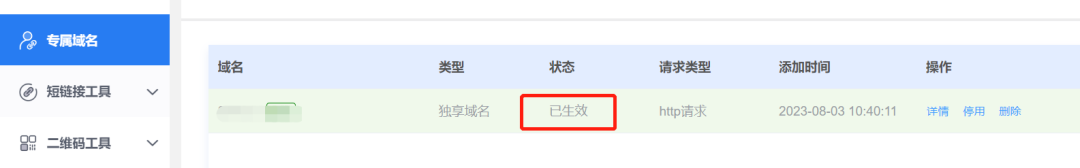 返回三维推后台,点击验证,成功后即可完成绑定。域名状态显示“已生效”,就表示您的品牌域名已可投入使用。